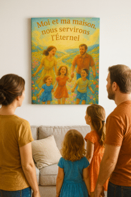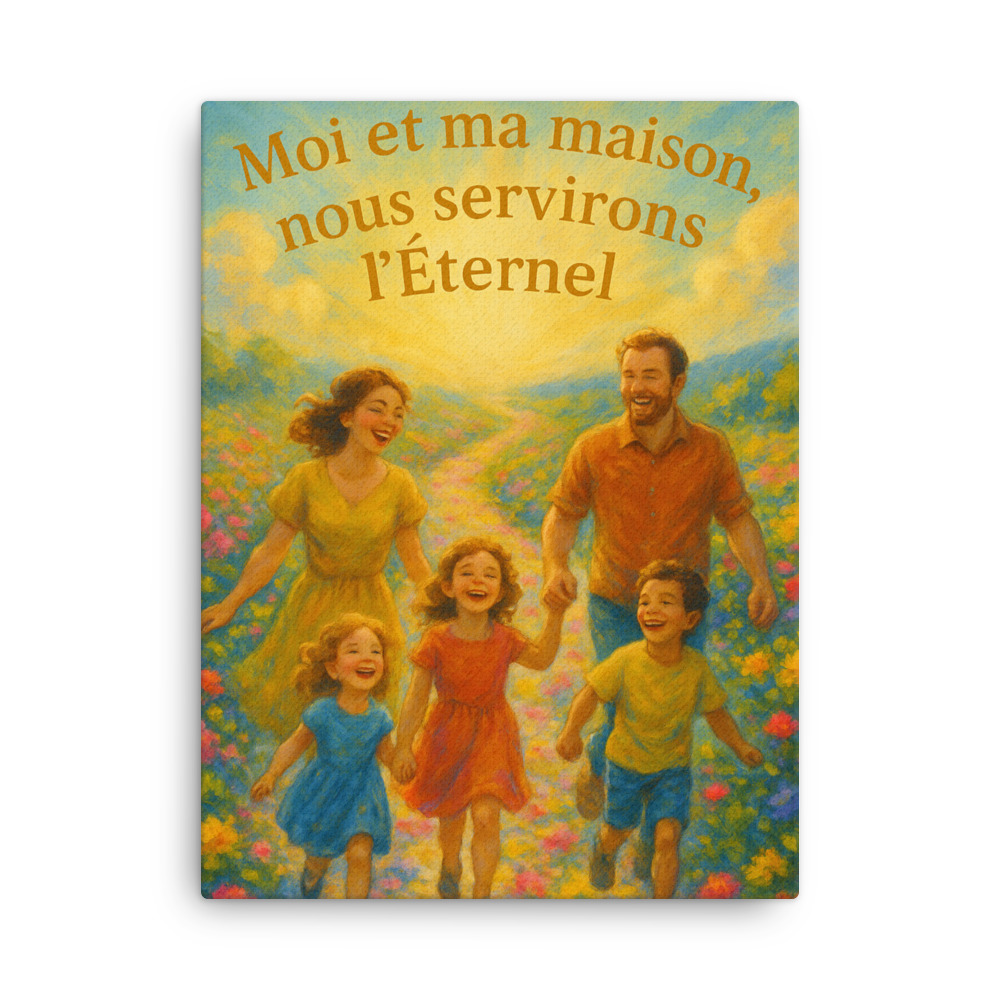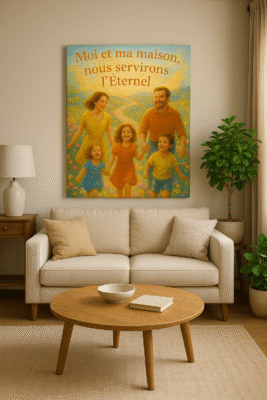 Apportez la paix et l’amour dans votre foyer avec ce tableau chrétien moderne. Illustrant une famille sous le verset « Moi et ma maison, nous servirons l’Éternel » (Josué 24:15), cette œuvre unique est une décoration murale inspirante, disponible en édition limitée.