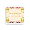 La typographie, noble et sobre, agit comme une inscription sacrée : lisible à distance, apaisante de près. Elle tient le regard, puis le relâche vers la scène, le foyer au centre, la famille en marche, pour que la foi et la vie se répondent. Ici, la beauté n’est pas décorative : elle est prière discrète.
