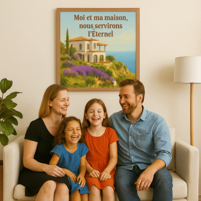 “Ce tableau chrétien encadré maison au bord de l’océan Josué 24:15 décoration murale incarne une magnifique maison méditerranéenne surplombant la mer, entourée de fleurs et de verdure. Portant le verset biblique « Moi et ma maison, nous servirons l’Éternel » (Josué 24:15), il symbolise un foyer enraciné dans la foi et la paix. Plus qu’une simple décoration murale religieuse, c’est un message puissant qui embellira vos murs et inspirera vos proches.